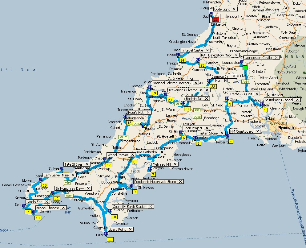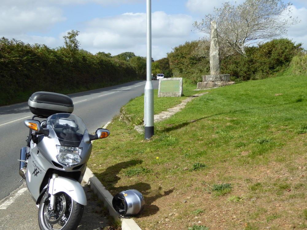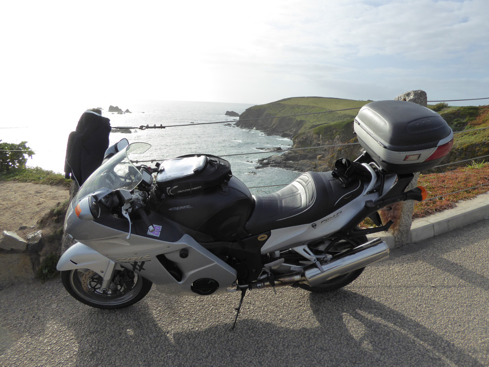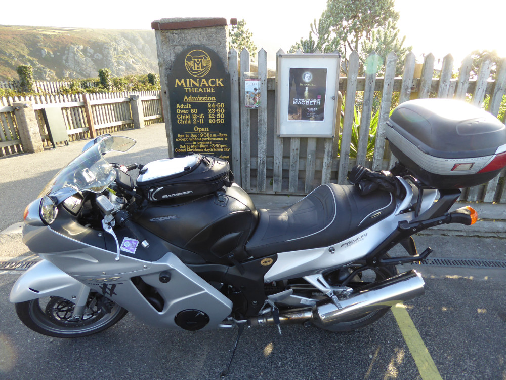 The weather was looking good for 25th and 26th September 2015 so I decided to ride to Cornwall. A very nice couple of days riding it turned out to be. I rode down from Wimborne on the Friday to start my clockwise route at Launceston. I finished up for the day at Lizard Point and stayed over at Helston that night. On Saturday it was an early start on a cold, bright and clear morning to Penzance. The Bird was freezing and covered in dew but of course it started first time. The ride to Penzance and then on around to St Ives in the bright sunshine was very nice. The road from St Just to St Ives is a favourite of mine. My last landmark was Bude and from there I headed home. My favourite landmarks were the Minack Theatre and Huer's Hut, mainly for the views. Also RAF Davidstow Moor for the welcoming guy who runs the museum.