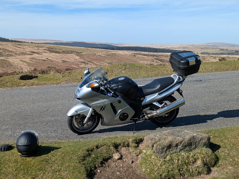 My South West route totalled 500 miles and took me through 8 Carpe Diems. I have a nice 2025 NT1100A but I opted to ride my old Blackbird. The Blackbird is a really nice bike to ride with its liquid smooth powerful inline four cylinder motor but these days its riding position is hard on my back, arms and shoulders. After about 100 miles all were starting to ache and by the end of each day’s 250 mile ride I had had enough. In contrast, I recently rode a 260 mile day on the NT1100A and felt fine (but maybe not so satisfied). I bought the Blackbird new back in 2005 so this year I’ll have had her for 21 years. She goes as well as she ever did which is more than I can say for me!