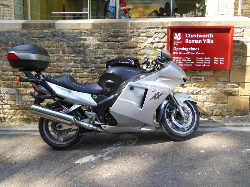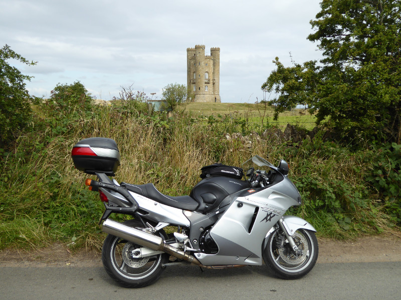 Gloucestershire is an interesting shaped county spanning both sides of the Severn to the west and covering much of the Cotswolds to the east. I particularly enjoyed riding through the Forest of Dean and the beautiful Cotswolds. No surprise then that the majority of my landmarks are found in these two areas. My route took me on the less travelled Cotswold roads which I found to be very good riding. (Maybe a tad bumpy as my Givi Wingrack had a fatigue crack in it when I got home.) Gloucestershire and Cotswold airports were also great spots for me. Both have excellent eateries with great views of the airport. Cooper's Hill where they hold the cheese rolling contest is so steep. They must be nutters to do that. All in all, a good ride. Especially as it was the first long ride on my Blackbird after changing the stator coils, rectifier and battery. It went well.