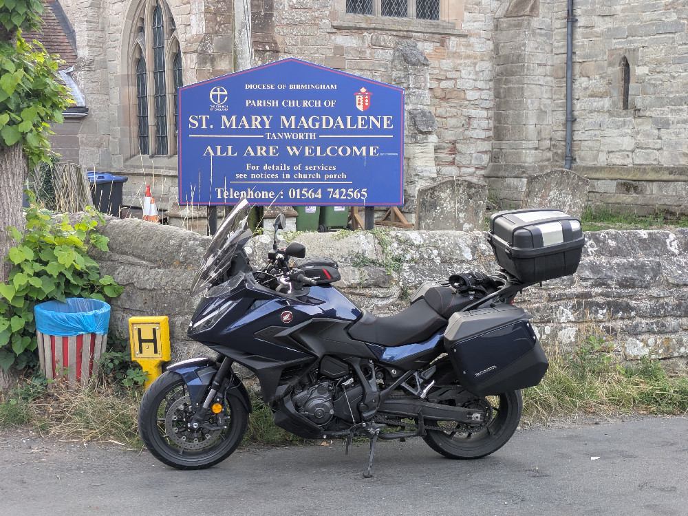As I said, I felt better on Saturday morning and I had a bowl of frosties and a bottle of milk for breakfast. The latest checkout was at 11 am and after breakfast I contemplated my next move. My head gash looked a bit nasty and I thought about going to Hull A&E but that would take all day and I really wanted to get home to Dorset so I cleaned it up and stuck a large plaster on it instead. I cancelled my pre-booked accommodation for Northumberland and Ayr and booked into a Premier Inn at Solihull. It was a gentle 150 mile ride to Solihull, mostly on motorway (M1). I made a couple of stops on the way, the first was the Triumph factory memorial CD at Meridan, the second was to a Solihull Tesco to get something to eat later at the Premier Inn. I left Hull around 10:30 and arrived at Solihull around 15:00. The Premier Inn room was very comfortable and I fell fast asleep on the bed as soon as I was in it.
