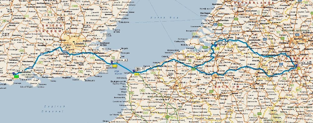 My cousin David plays fiddle for the Kolner Philharmonie (Cologne Philharmonic) and is always inviting me over so on the spur of the moment I decided to take a trip over. The plan was to take Eurotunnel out on Wednesday 2nd September. I wasn't sure about when I was returning as I was thinking about going on to the Harz mountains and possibly Berlin. As it turned out, owing to the weather I didn't get any further than Cologne returning on Eurotunnel Sunday 6th September. I hadn't ridden the Blackbird too much so I decided to give it a run out to Germany and back.