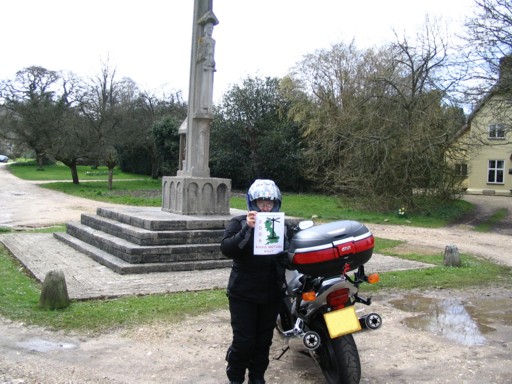 So Sunday 2nd April we dipped our toes in the water and hit the local landmarks. We tried to remember what we needed to do? We read through Dave's instructions and then printed and laminated a 2006 RBR card. Full of confidence we sped off to Briantspuddle just down the road from us. Wellow and Salisbury would follow. How difficult could it be? We didn't need to research, research, research. We got to Briantspuddle and took forever to find its War Memorial. After we had found the War Memorial, we read the rules again before enacting the RBR landmark ritual. We pointed the Blackbird at the memorial and Chris struck a pose with RBR card in hand alongside the Blackbird's registration plate. I then proceded to take about 20 photos as I did throughout for every landmark. Chris's face gradually changed from a smile to a 'how many more photos are you going to take?' grimace.