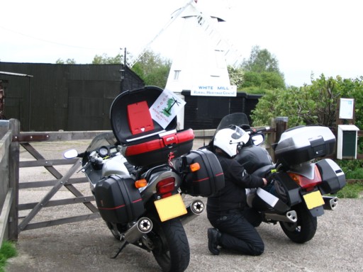 By now we had easily made RBR Bronze so we were now looking for a trip that would take us to Silver. The trip we planned was to do a big clockwise loop around London taking in the northern home counties, Northamptonshire, Cambridgeshire, Norfolk, Suffolk and East Sussex. On Friday 7th July after work we rode to the Travelodge at Dunstable. Unfortunately just after leaving the M25 we witnessed a nasty bike accident. We were stopped checking our directions near a roundabout when a girl on a R1 making her way around it was hit by a car entering it. Her bike was totalled and she was going in and out of conciousness. Hopefully she's alright now as the police and medical care were on the scene very quickly. She was very lucky to go through a gap in the armco barrier and end up on the grass. Not a good start to the weekend.