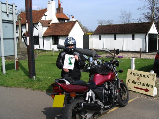The following Saturday 22nd April and we were off again. This time we went clockwise from Corfe Mullen to Speen to Long Wittenham to Marlow to Chobham and back home to Corfe Mullen. After last time, I spent a bit more time Googling and, we took two copies of the RBR card with us! We also went on the Big One this time. I've had this bike for 8 years and wouldn't part. My pillion, however, always moans about the seat being too hard. You see she's been spoilt by the Blackbird's gel packed seat she forced me to buy when she took an instant dislike to the standard seat.