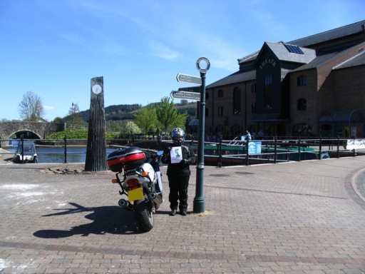 We booked into a nice B&B at Criggion just south of Oswestry for Friday 5th May. Our first landmark on the way was Runston Chapel. We were ignorant about the archery range and fortunately we avoided it although we did ride straight past the Chapel down an overgrown gravel strewn lane before back tracking to it. It was a lovely day which made for a pleasant walk and a nice view of the Severn estuary and its bridges. After than it was on to Ystrad Mynach to find the 'Wheel of Drams'. Looking back at this I have to say that we did make hard work of this one. Then it was onto Brecon on the A470 from Merthyr. I do like that road. At Brecon, a couple of locals pointed us in the right direction and we were soon snapping the Canal Basin. Quite a nice spot.