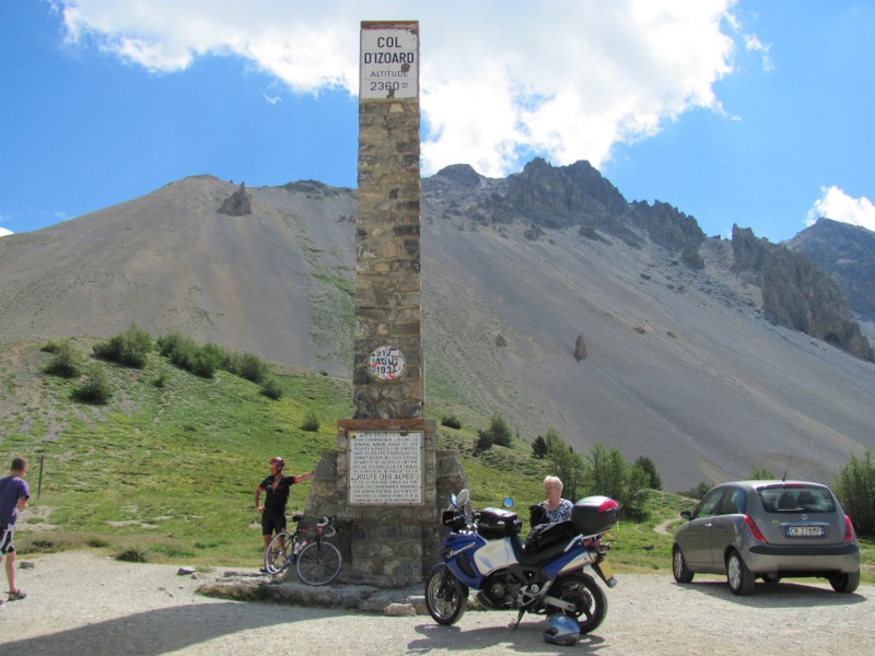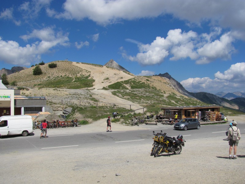 The climb out of Bardonecchia into the mountains takes us back into France to the old town of Briancon. There are lots of things to see and explore at Briancon but it was way too hot for us to walk around the town in our gear so we passed through the town heading for the Col D'Izoard at 2360 metres. At the Col we stopped, took some photos and watched a couple of skate boarders start off down the road from the Col.