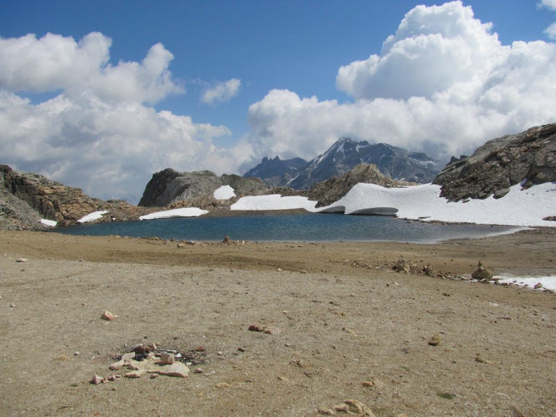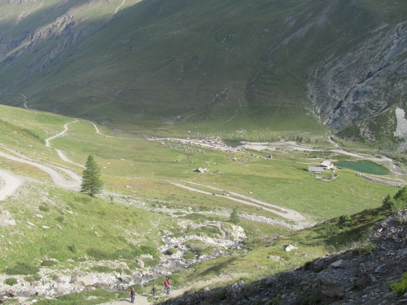 The Colle del Sommeiller is 3009 metres above sea level. The scenery was fantastic and the weather beautiful. It felt great to be up there. I wandered around a bit and had a look at the lake. There were also some Italian lads on small trail bikes who were riding up scree slopes. It was amazing to watch them as they seemed to be almost climbing vertically.