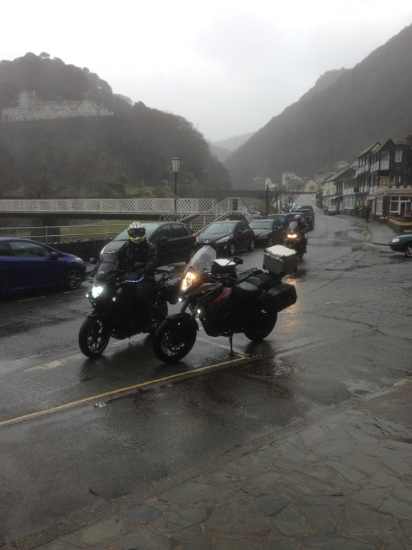 We climbed out of Porlock on the infamous Porlock Hill hanging on to someone making very rapid progress on a GS with a pillion. When we got to the top we were exposed to what felt like gale force winds at which point the GS left us for dead. It was blowing a real hooley and moving us all over the road. I felt for Rob on his much lighter CB500X.